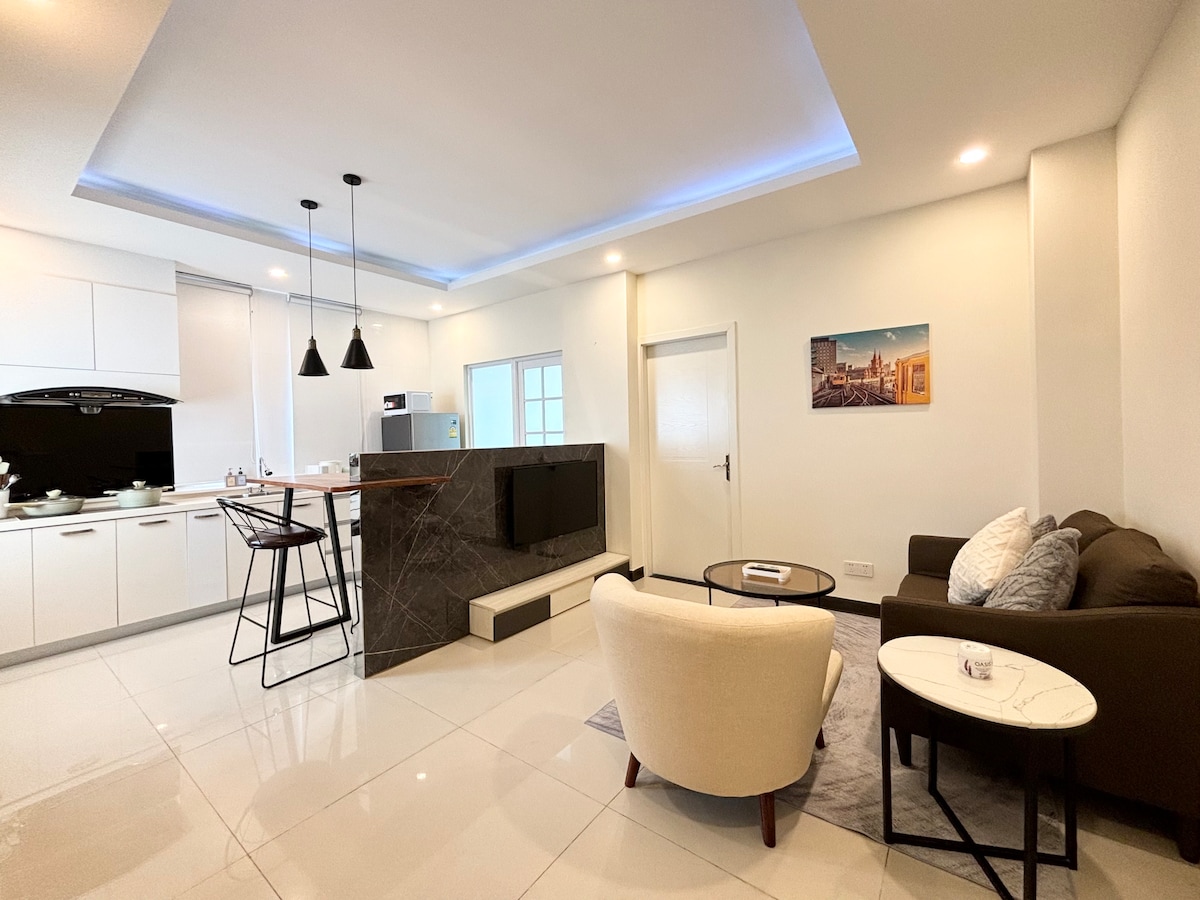 Disfruta de una estancia de lujo en nuestro apartamento bellamente rediseñado con electrodomésticos de primera categoría (televisor inteligente de 65 pulgadas, cocina completa, nevera, lavadora, aire acondicionado inteligente, inodoro japonés...) con colchón y sofá de calidad. Perfecto para familias🥰, ejecutivos de negocios 💻 o parejas encantadoras. ❤️Servicios y comodidades completos: Biz Lounge, sala de reuniones, simulador de golf, Sky Bar, piscina, gimnasio, cafetería y parque infantil. Camas supletorias disponibles para más de 3 huéspedes. ¡Siempre seguimos mejorando nuestra casa!