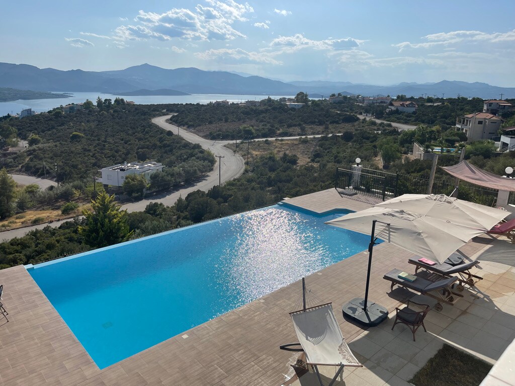 This unique 500 sqm villa is located in a privileged spot that offers stunning panoramic views of the bay of Theologos, making it an ideal getaway for your holidays—just 90 minutes by car from Athens. All the bedrooms have a unique view of the sea. Only 5 minutes by car from the beaches and the market of Theologos, this villa is perfect for peaceful vacations. Let yourself drift into moments of absolute relaxation as the sun colors the sky, beside the large 130-square-meter private pool.