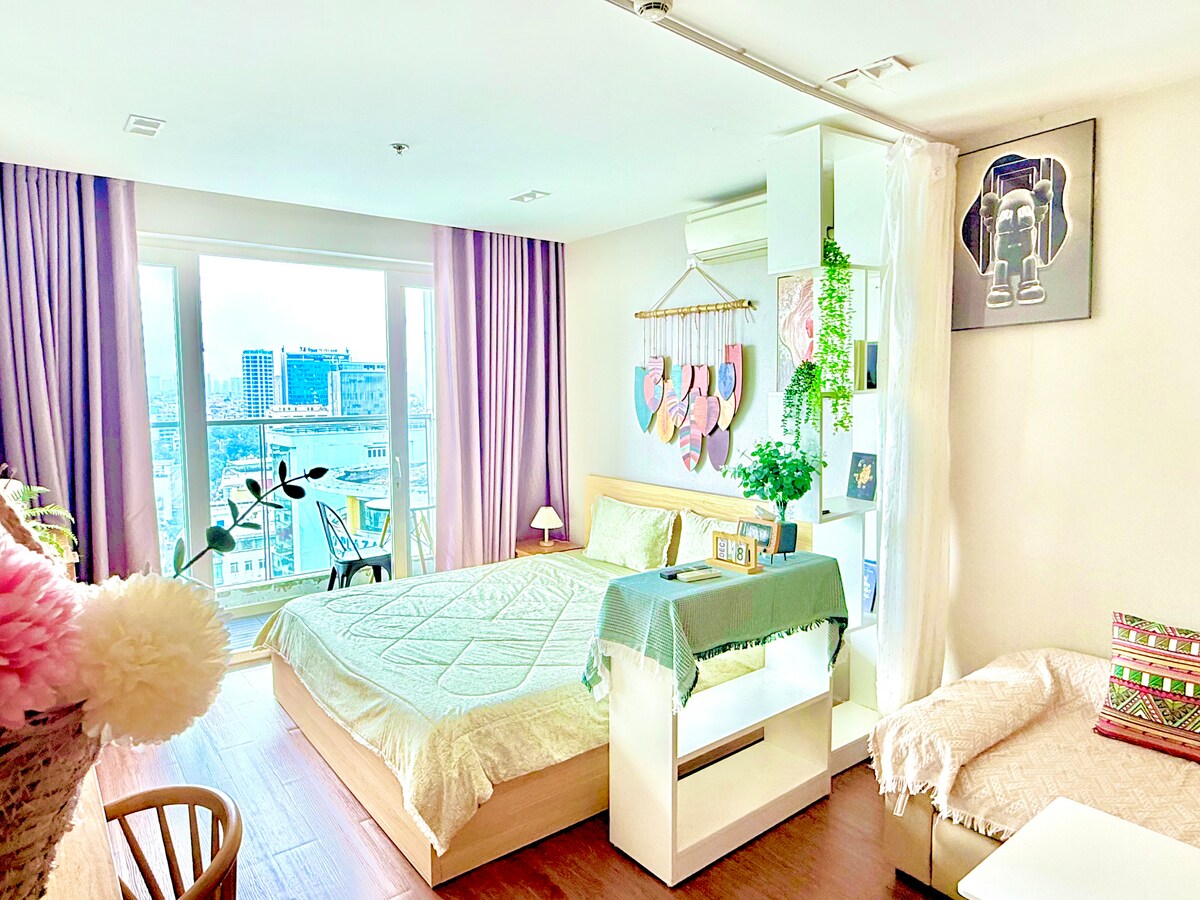 El espacio en alquiler se puede utilizar para la estancia, el trabajo y las reuniones. La habitación cuenta con instalaciones completas para trabajar y hacer turismo como wifi, sala de reuniones, máquina de impresión, TIVI y proyector. Un sofá cama inteligente permite a los huéspedes alojar a los huéspedes durante la noche con tres personas o permitir que los huéspedes tengan una habitación de doble uso que se puede utilizar para la habitación cuando sea necesario, pero que se utiliza como oficina para trabajar en otras ocasiones. Sky Center cuenta con muchos supermercados, restaurantes, piscina, gimnasio, lavado, servicios de estacionamiento para los huéspedes.