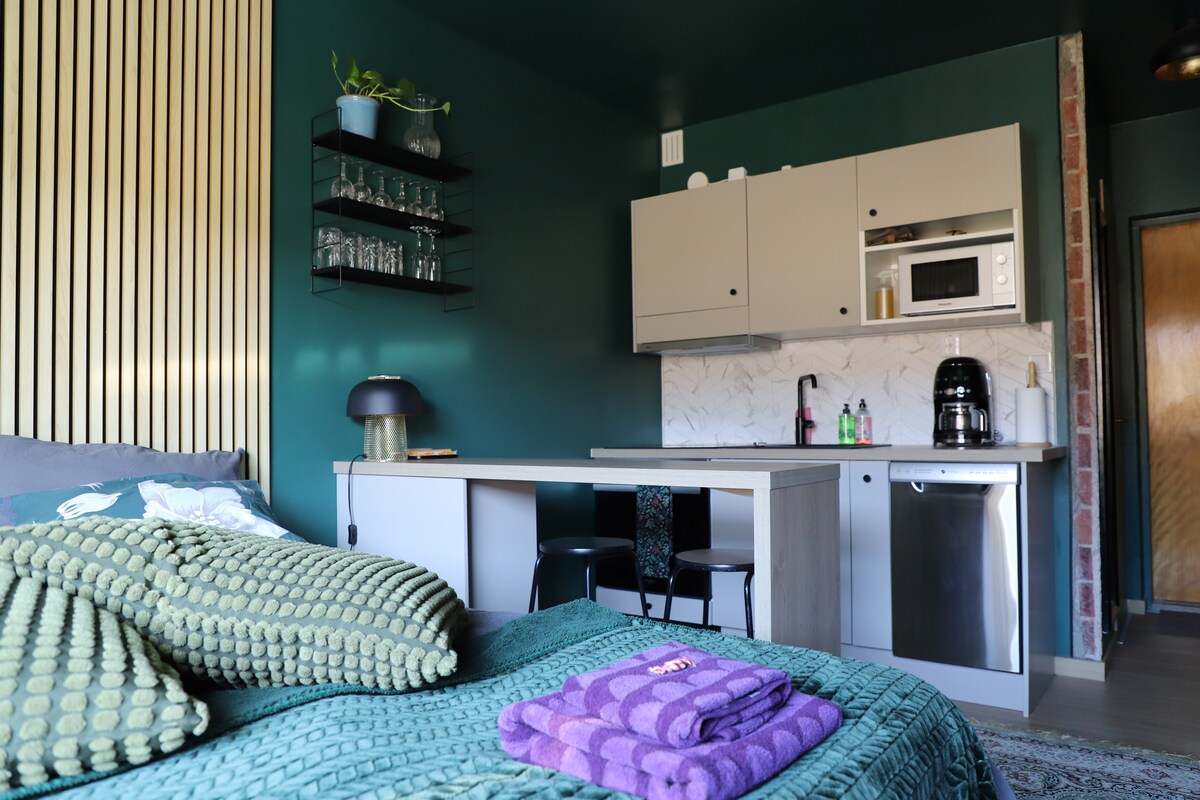 Disfruta de una estancia elegante en este céntrico apartamento justo en la esquina del mercado. Este departamento compacto de 20m2 pero acogedor está muy bien equipado. Ven y enamórate. Esta casa recién renovada es perfecta tanto para un viaje de trabajo como para un descanso de la vida cotidiana. Es el corazón para que lo disfrutemos. ¡Bienvenidos!