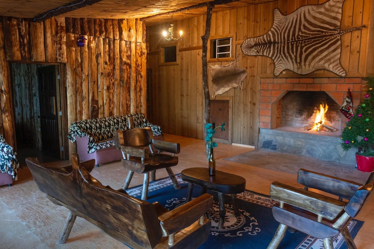 Cabaña construida en madera y piedra Dos habitaciones con dos camas matrimoniales y baño en cada habitación Chimenea, Asador y cocina equipada con refrigerador, estufa y microondas Un espacio pensado en la convivencia familiar y el contacto con la naturaleza