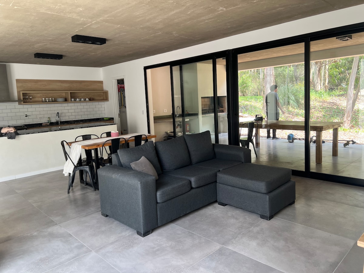 La casa cuenta 3 dormitorios más una habitación de servicio en el sótano con baño. Hay 2 baños completos con bañaderas, un toilette y ducha en el sótano. También tenemos una terraza de 30 metros cuadrados en primer piso y un jardín hermoso y un quincho cubierta con parrilla en el jardín pegada a la salida de la cocina. Estamos solo a 50 metros de la playa y la casa posee vista al mar. Cariló centro esta solamente a 15 cuadras de la casa y a Pinamar se puede llegar rápidamente en coche o autobús.