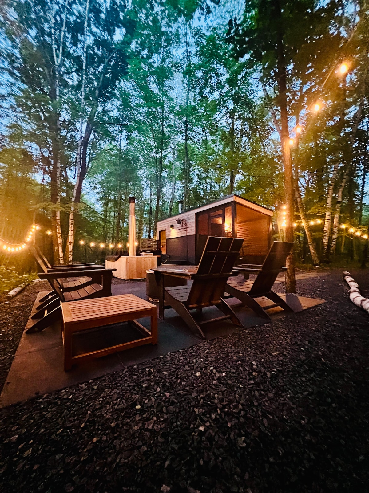 Escapada remota, tranquila, silenciosa y extremadamente privada a orillas de un río protegido, ¡a solo 1,5 horas de las Ciudades Gemelas! Incluso el hermoso paseo hasta allí es relajante. Entra en un mundo de paz y calma en lo profundo del bosque. Prepara deliciosas comidas en una cocina moderna de alta gama bien surtida, juega en el río, relájate en la sauna o disfruta de una hoguera. Esta no es una cabaña típica, sino un ecooasis espiritual con una mezcla ecléctica única de estética moderna, rústica, nativa americana y japonesa.