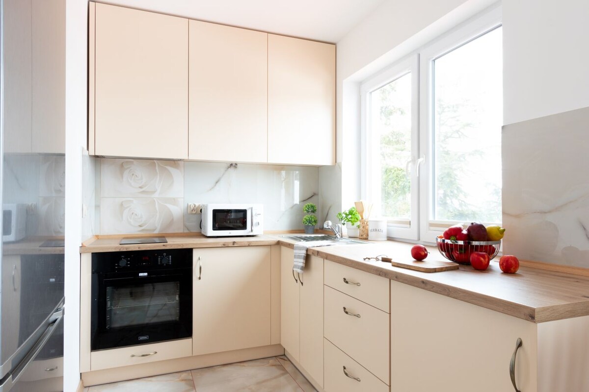 Elegante apartamento de 2 habitaciones con una superficie de 40 m2 en una segunda planta en un nuevo bloque vallado con ascensor. El alojamiento consta de: un dormitorio, un salón con zona de cocina, un baño, un pasillo y una terraza. En el dormitorio, 2 cómodas camas que se pueden combinar en una, un armario, un sofá cama en la sala de estar, una mesa con sillas, un televisor, una nevera, un horno, una estufa eléctrica, un hervidor de agua, una plancha y un microondas. En el baño hay una lavadora y un secador de pelo. El apartamento dispone de plaza de garaje. Excelente ubicación céntrica.