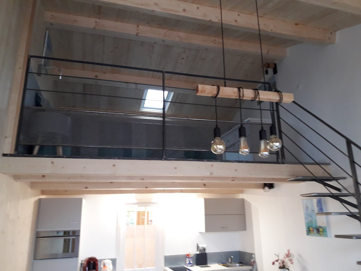 Alojamiento nuevo y luminoso de 42 m², de los cuales 10 m² son un altillo contiguo a la casa de los propietarios. Sala de estar de 18 m2. Gran habitación de 14 m2 con cuarto de baño y la 2ª en altillo con acceso por una escalera de caracol. Aseos independientes. Gran terraza de 40 m2 al suroeste privada y sin vecinos. Aparcamiento privado en terreno arbolado cerrado con muros. Cocina equipada: nevera/congelador, placa de inducción y campana extractora, horno, minihorno, microondas, hervidor de agua, cafetera senseo, tostadora, lavavajillas.
