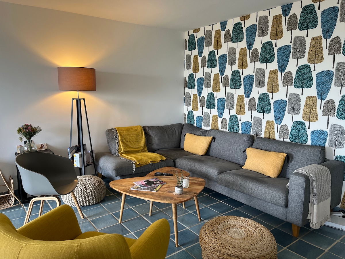 Relájate en este alojamiento único y tranquilo, situado frente al mar. El sonido de las olas acompañará sus días, para una estancia relajante en un entorno moderno y cálido. ☀️ Disfrute de una terraza soleada ideal para admirar las espectaculares puestas de sol. 🏖️ Acceda directamente a la playa de Sables Blancs, una de las más bellas de Concarneau, a solo unos pasos. Un lugar perfecto para reconectar con la naturaleza... y disfrutar de la orilla del mar de otra manera.
