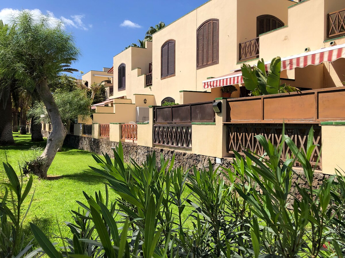Bienvenido a nuestra acogedora casita frente al mar en Oasis del Sur! Con vistas a las tranquilas aguas de Golf del Sur, nuestra casa adosada ofrece una escapada tranquila para familias, parejas o amigos que buscan tranquilidad. Relájate y disfruta de un espacio funcional y bien decorado, con dos dormitorios dobles, dos cuartos de ducha y una terraza soleada perfecta para tomar el sol o comer entre amigos. Date un chapuzón en la tranquila piscina climatizada de agua salada.