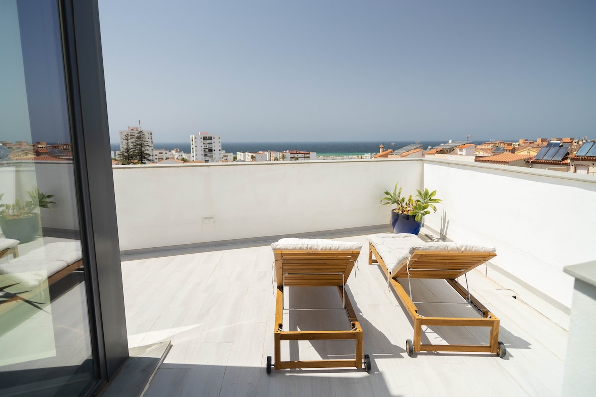 Precioso ático con amplia terraza y encantadoras vistas al mar. Loft de 50 m2 + 10 m2 de terraza con una cama de matrimonio para 2 personas. Está muy cerca de la playa de Los Lances (1 min. caminando) y de los bares y restaurantes del paseo marítimo. También está muy bien situado para visitar el centro (300 m.) o los supermercados y tiendas de Tarifa (200 m.) Perfectamente equipado incluso para vivir una larga temporada (aquí vivo yo durante todo el invierno) Incluye parking privado