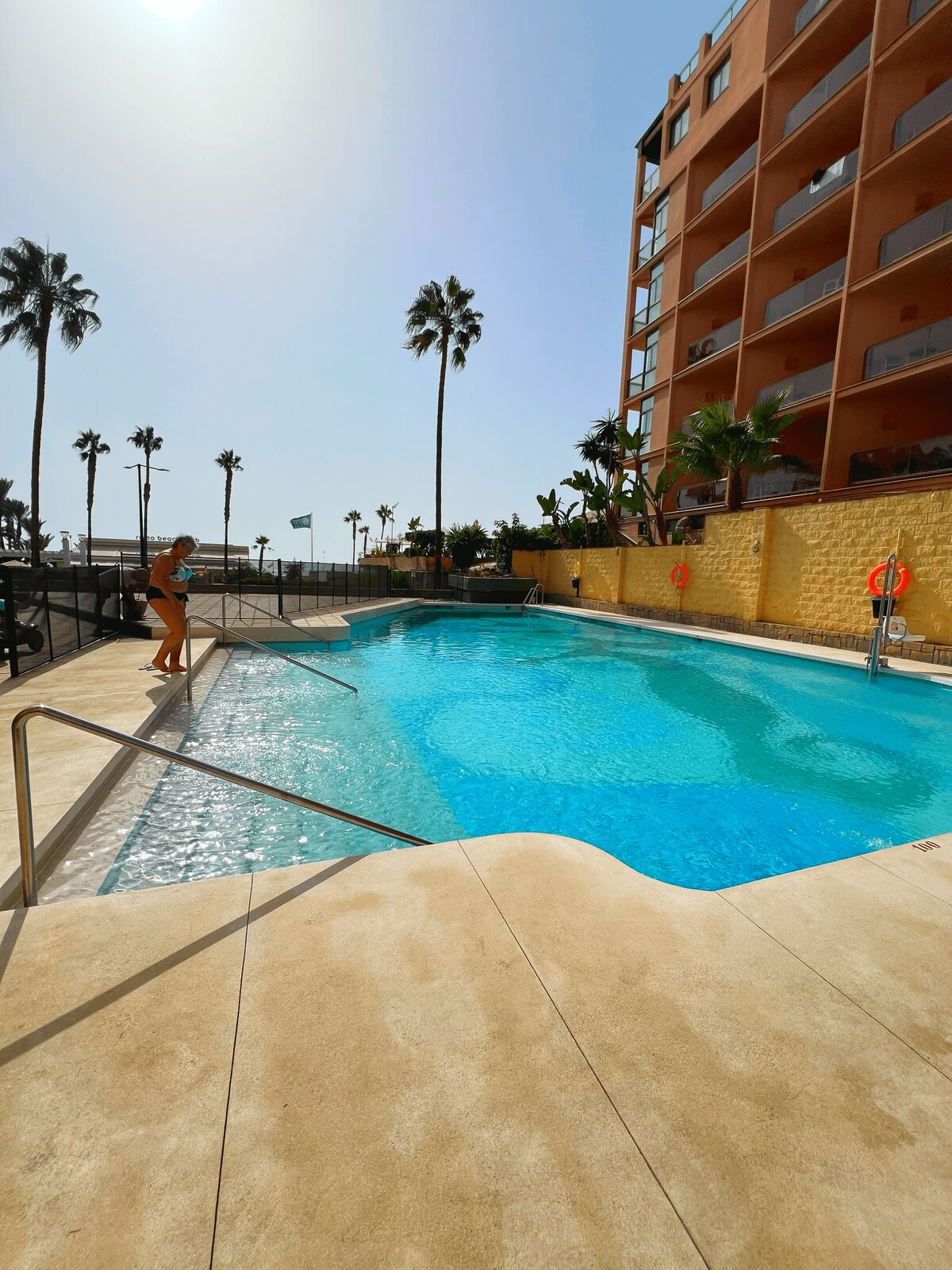 ¡PLAYA DE MÁLAGA! Ubicación triple AAA. ¡Vistas completas al mar! Lujoso y espacioso apartamento tipo estudio con cocina y baño independientes totalmente equipados. Terraza con impresionantes vistas al mar Mediterráneo, Málaga y Sierra Nevada. Bajondillo-Torremolinos... A 20 minutos del centro de Málaga en metro. Aparcamiento, pista de tenis, gran piscina, con restaurante y bar, salvavidas, recepción 24/7, internet de alta velocidad de fibra óptica, cama cómoda y mobiliario moderno. Acceso a la playa mediante ascensor. Hermoso jardín maduro.