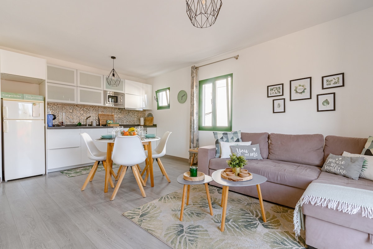 Your family will be close to everything when you stay at this centrally-located place. Modern 2 bedroom ground floor apartment close to Mogan beach and harbour. The balcony faces west, so you get the most beautiful sunsets. Casa Serin consist of 2 bedrroms, 1 with a queen size bed and 1 with a single bed. Perfect for a little family. It has a smart TV, wifi, washing machine, coffee machine ( filter and expresso) kettle, toaster etc.