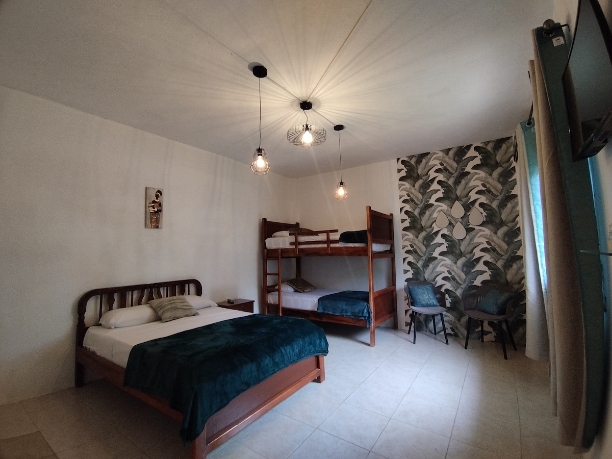 Vikara es un centro de retiro boutique frente a la playa en Olón, que ofrece programas de bienestar y un espacio tranquilo para relajarse. Esta habitación moderna y cómoda tiene capacidad para cuatro personas y tiene vista a un jardín sereno con una piscina central. Los huéspedes pueden disfrutar de clases de yoga o meditación en nuestro estudio con vista al mar. Se incluye un desayuno fresco de origen local. Impresionantes puestas de sol esperan a solo unos pasos a través del jardín.