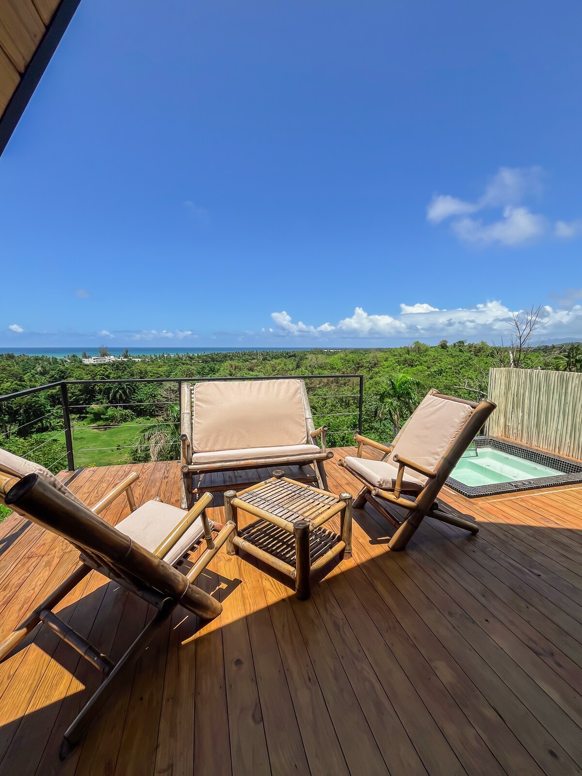Descubre un pedazo de paraíso en nuestra exclusiva villa frente al mar en Las Terrenas, Samaná. Ubicada sobre un arroyo sereno que fluye por debajo, esta impresionante villa de madera ofrece una mezcla armoniosa de naturaleza y confort. Con capacidad para seis huéspedes, la villa cuenta con 3 amplios dormitorios con 3 baños completos y un medio baño adicional para tu comodidad. ¡Disfruta de impresionantes vistas al mar en toda la casa, relájate con el sonido del arroyo y sumérgete en el paisaje tropical!