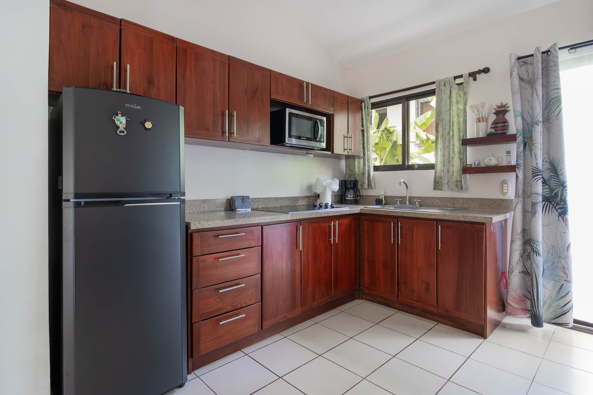 Here Comes the Sun, Little Darling! *Gated Condo Complex with 24/7 security *Cozy, air-conditioned, sleeps 6, perfect for families or couples *Only 200 meters from 2 stunning beaches, Playa Penca and Playa Potrero *Steps away a salt water pool *Walking distance to many restaurants *King Bed in the Master, Bunk bed and Queen bed in 2nd bedroom, trundle bed sofa in living room, Pack & Play *Stainless steel appliances, TV with Netflix, beach equipment, WIFI *Pets Welcome for an additional fee