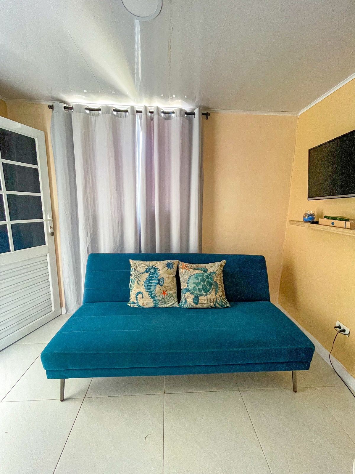 Disfruta de este loft privado en una casa campestre con área verde común de 180 m² (zonas para grounding). Ubicado a 3 calles del aeropuerto, 2 de la playa Spratt Bight y 3 del centro comercial. Ideal para parejas o familias pequeñas. Incluye cama king, sofá-cama king, cocina equipada, aire acondicionado y agua caliente. ¡Te recibimos gratis en el aeropuerto!