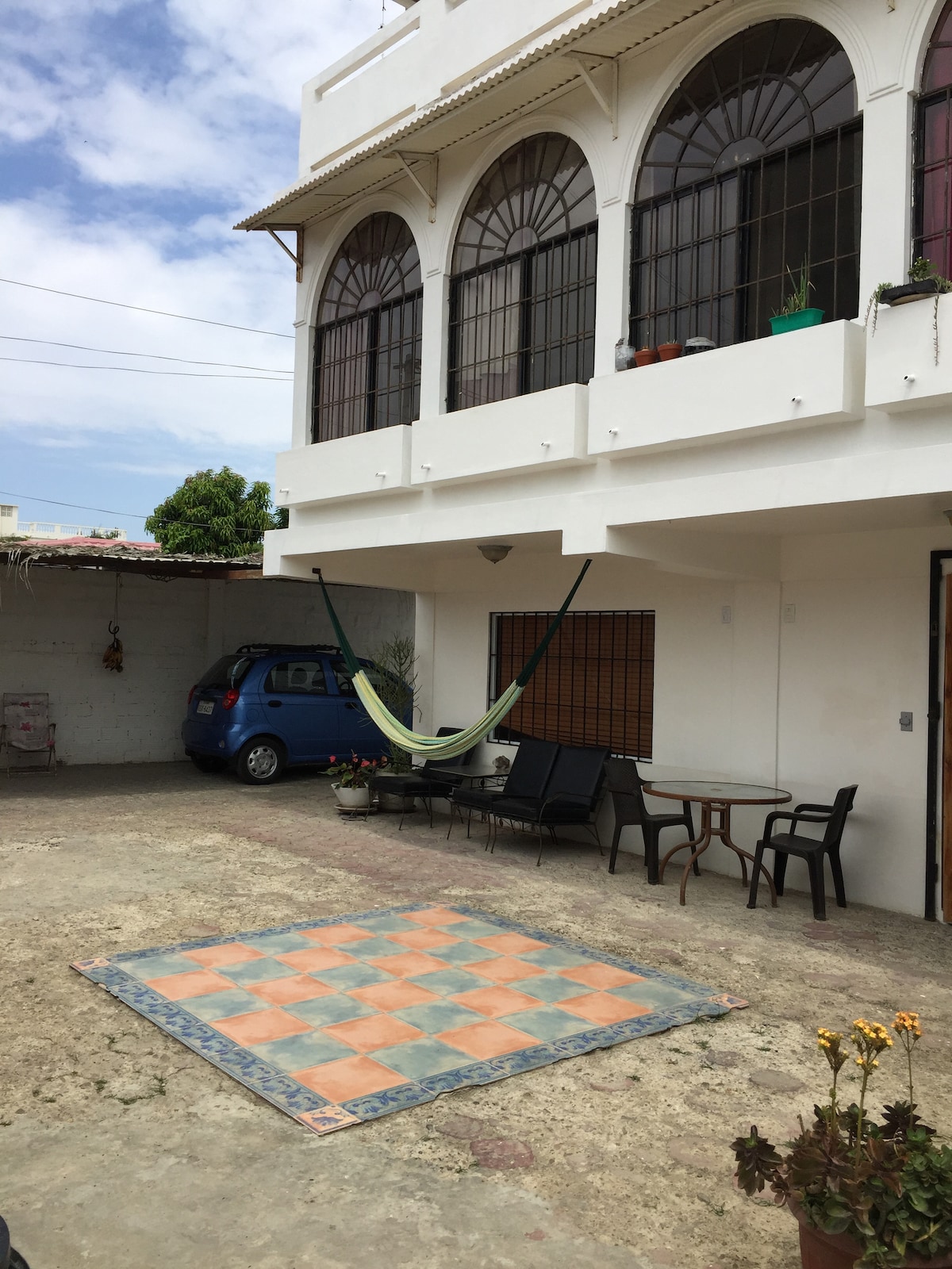 Casa vacacional, sencilla, acogedora ,con espacios abiertos, capacidad 24 personas , cuenta con una piscina grande de 5 x 10 metr. habitaciones independientes , todas las 6 habitaciones tienen baño privado y aire acondicionado , Tv ; La cocina cuenta con todos los electro y utensilios para la preparación de alimentos ; Zonas de distracción, futbolín, hamacas , piscina , Direcc: Kilometro uno y medio vía a Data , a 700 metros del Mall y a 600 metros de la playa , cuenta con garaje para 5 au