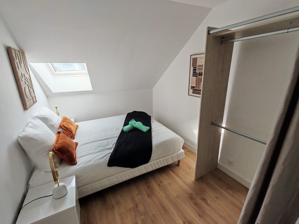 Residencia totalmente independiente con WIFI de 45 m² con terraza y entrada privada (digicode) que nos hemos tomado la molestia de acondicionar con cuidado para darle la bienvenida. Situada en pleno centro de la ciudad, cerca de la estación de tren y de la Fundación E. Leclerc, podrá disfrutar plenamente de las tiendas: panadería, restaurantes, cine, Carrefour City...