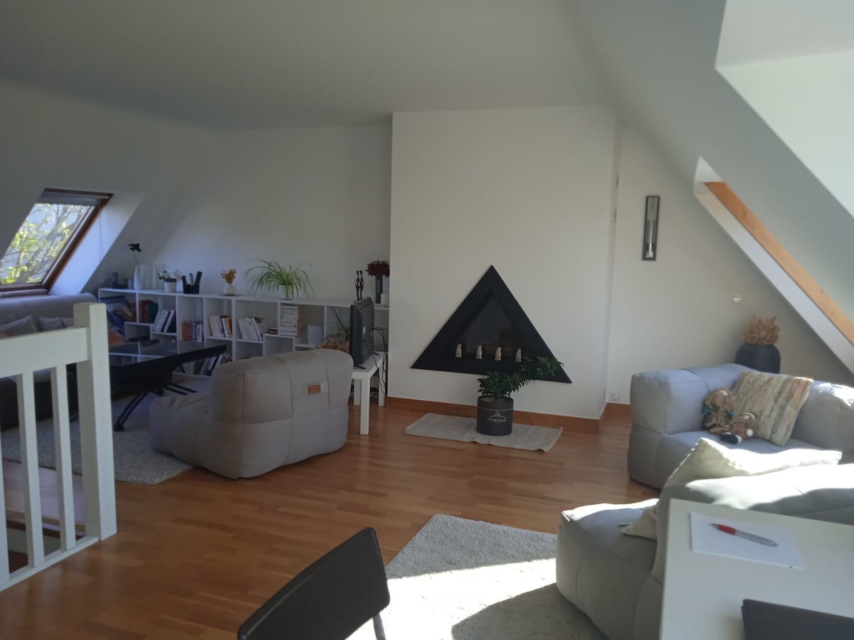Simplifíquese la vida en este alojamiento tranquilo y céntrico. Casa reformada con el espíritu de las Cícladas como un nido luminoso. Gran sala de estar de 30 m2 con salón comedor cocina que da a una terraza para comidas al sol. Una estufa completa esta habitación para calentar los pocos días de lluvia que nunca duran. Arriba, una pequeña escalera conduce a 2 dormitorios con un baño con ducha en el centro. 1 dormitorio principal con cama de 160 cm x 200 cm 1 habitación para niños 2 camas de 90 x 200. La serenidad.
