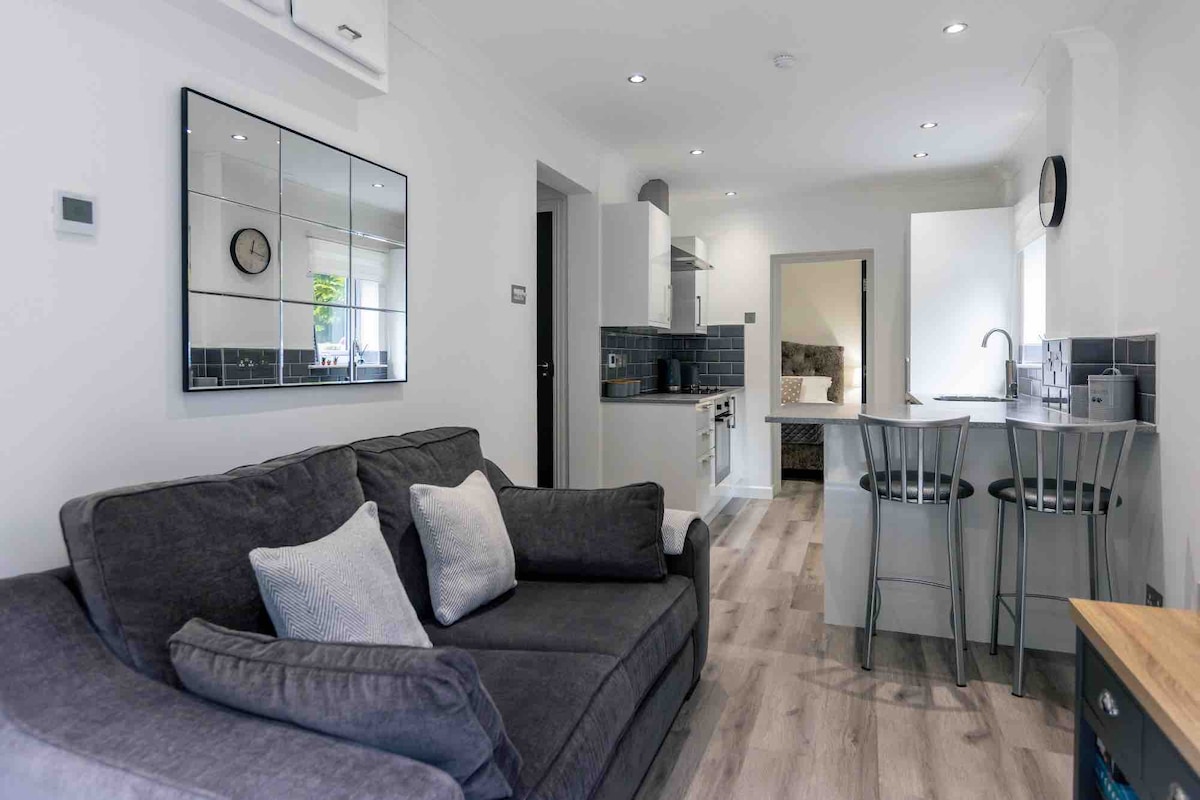 Precioso apartamento en planta baja con aparcamiento gratuito en un espacio moderno y luminoso. Disfruta de banda ancha de fibra ultrarrápida, un televisor de 75" con Sky y Netflix y techos altos. A solo 15 minutos a pie de Barbican, a 20 minutos del centro de la ciudad y a 2 minutos de tiendas y restaurantes. Pide con Deliveroo, Uber Eats o Just Eat. Cámaras de seguridad en los puntos de entrada, llegada autónoma con caja de llaves. ¡Perfecto para familias, parejas, viajeros solos o viajes de negocios!