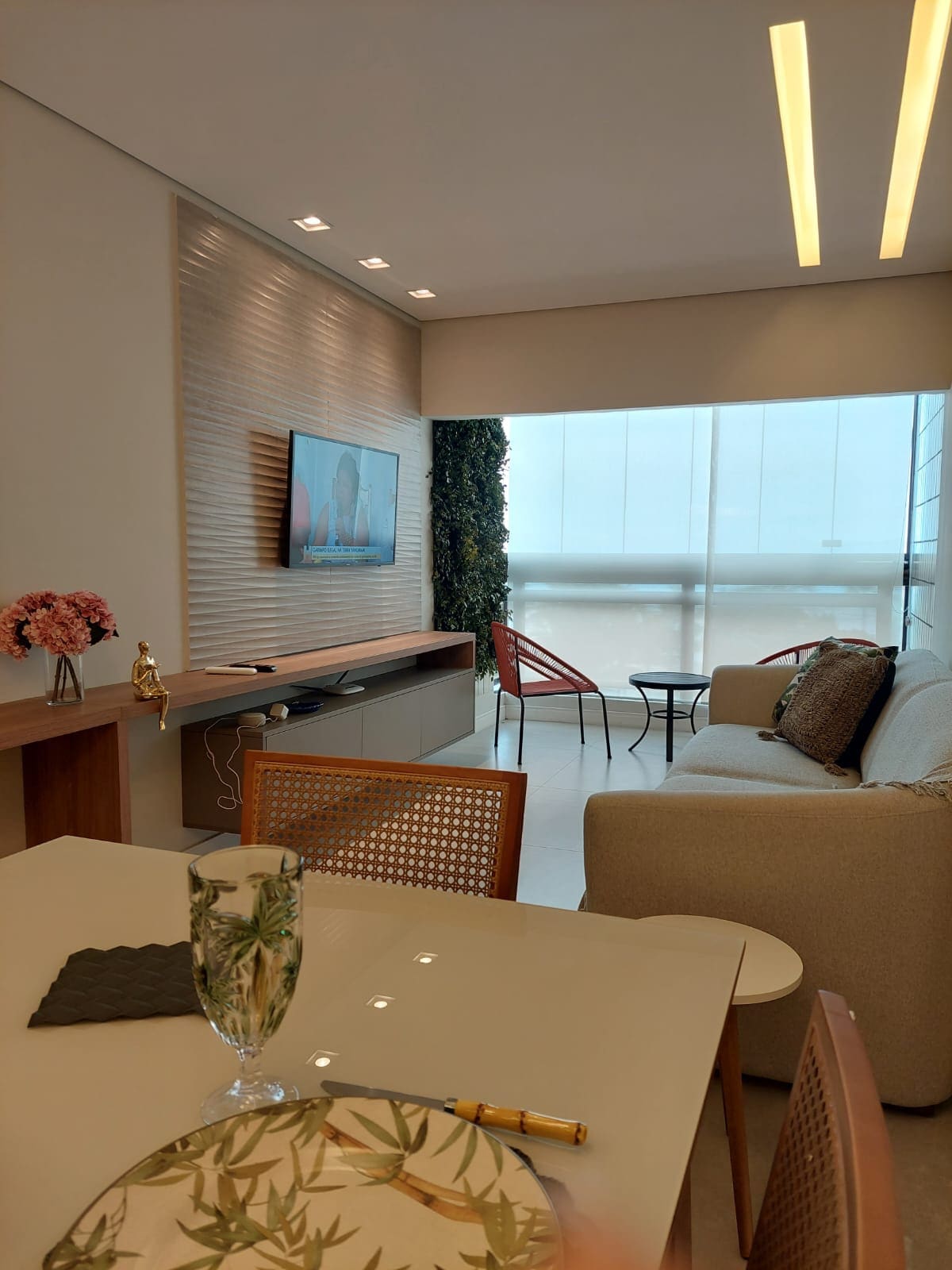 Apto único, familia, hermosa decoración, pie en la arena, a - 50 metros de la playa en Riviera de São Lourenço, 3er piso, módulo 3. Servicio de playa, todo nuevo, cómodo, ideal para 4 a 5 (máx. 6) personas, una plaza de aparcamiento, 82 m2, 2 dormitorios, 2 camas dobles (una tamaño queen) y 1 individual, sofá cama en el salón, 2 baños, balcón grande, barbacoa eléctrica, filtro, Dolce Gusto, lavadora/secadora, wifi, 4 aires acondicionados. + 4 televisores (sala/dormitorios/balcón). Tenemos toallas/cama/mesa/baño. Aceptamos mascotas con una pequeña tarifa única.