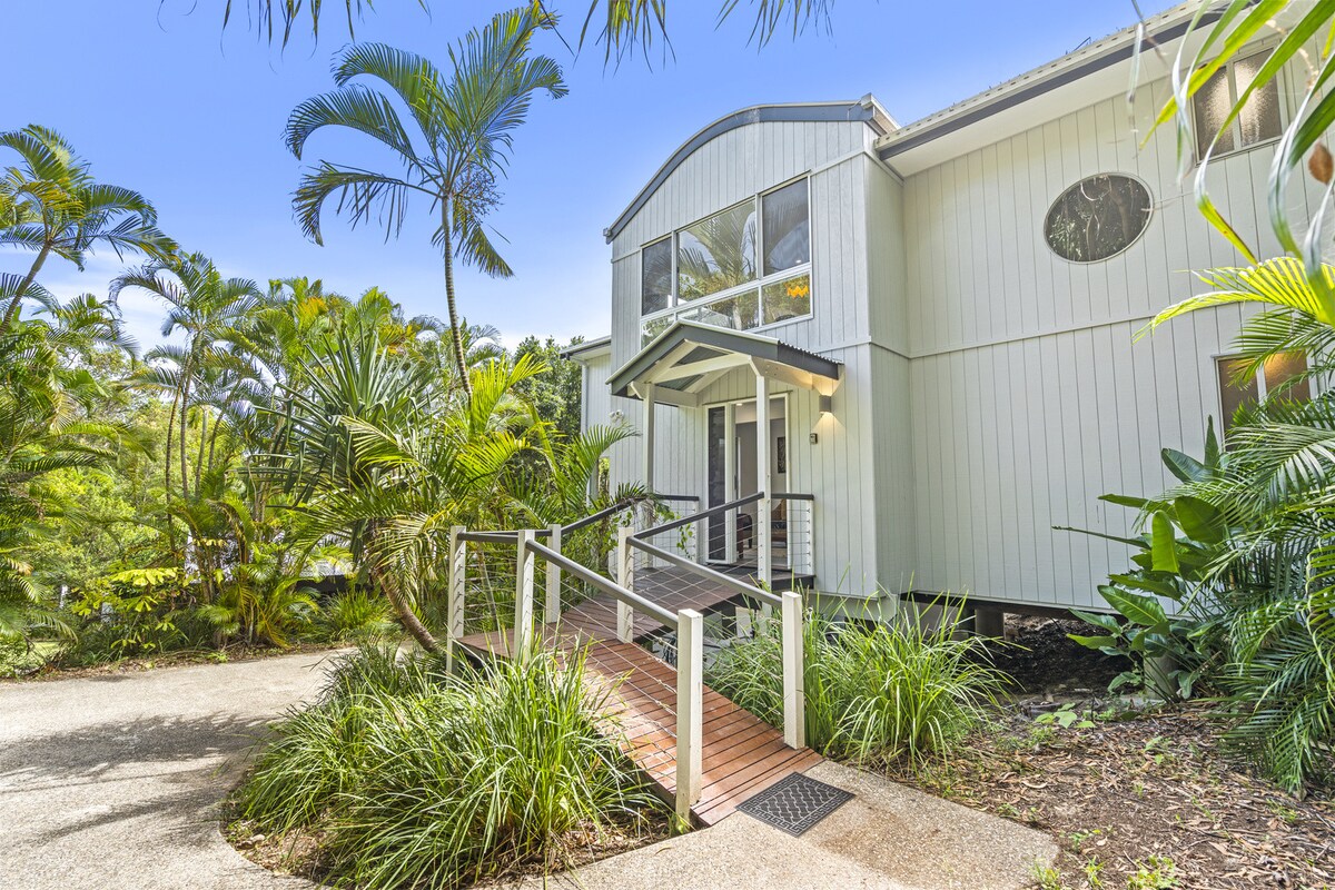 Vistas de✅ 180° al agua y a la ciudad desde varias habitaciones Atardeceres ✅ épicos sobre el agua: una joya de la costa este Entretenimiento al✅ aire libre: chimenea, hamacas, barbacoa ✅ Un sillón de masaje de lujo para todo el cuerpo ✅ Amplio bloque privado de ½ acre en la cima de una colina ✅ Capacidad para 11 personas en 5 dormitorios con ropa de cama de calidad, 5 x A/C ✅ Fauna salvaje: canguros, petauros, águilas ✅ Entretenimiento: wifi, Foxtel, juegos, libros Cocina gourmet✅ totalmente equipada con cafetera Nespresso. A ✅ 3 minutos del ferry, tiendas y playas tranquilas ✅ Reserva casas una al lado de la otra - ¡23 huéspedes!