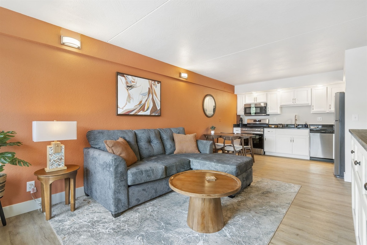 ¡La mejor ubicación! Esta es una casa de 2 dormitorios y 1 baño ubicada a pocos minutos de la calle principal. La amplia sala de estar cuenta con un gran televisor inteligente para noches de relax en el sofá. La cocina cuenta con todos los elementos para cocinar comidas gourmet que puedas necesitar. El dormitorio principal tiene un colchón de espuma viscoelástica tamaño king y un televisor inteligente. El segundo dormitorio tiene un colchón de espuma viscoelástica tamaño queen que seguramente te dará un sueño reparador.