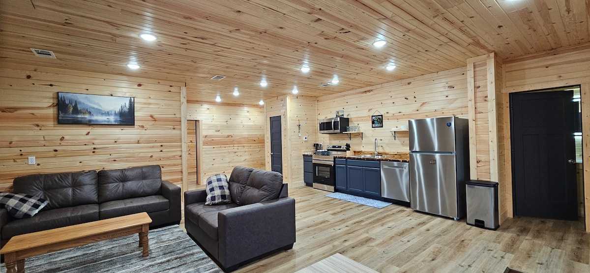 Ubicada en el bosque, a solo 5 minutos en coche del parque estatal Bennett Spring, esta nueva cabaña cuenta con sala de estar completa, dormitorio, cocina, zona de lavandería y espacio para fogatas y parrillas al aire libre. White Pine Lodge se encuentra lo suficientemente cerca de varias actividades al aire libre para mantenerte ocupado, pero lo suficientemente fuera de la red como para proporcionarte un poco de paz y relajación. Hay una barra de café completa, surtida con café, té y chocolate caliente. Ten en cuenta que no hay wifi en esta ubicación.