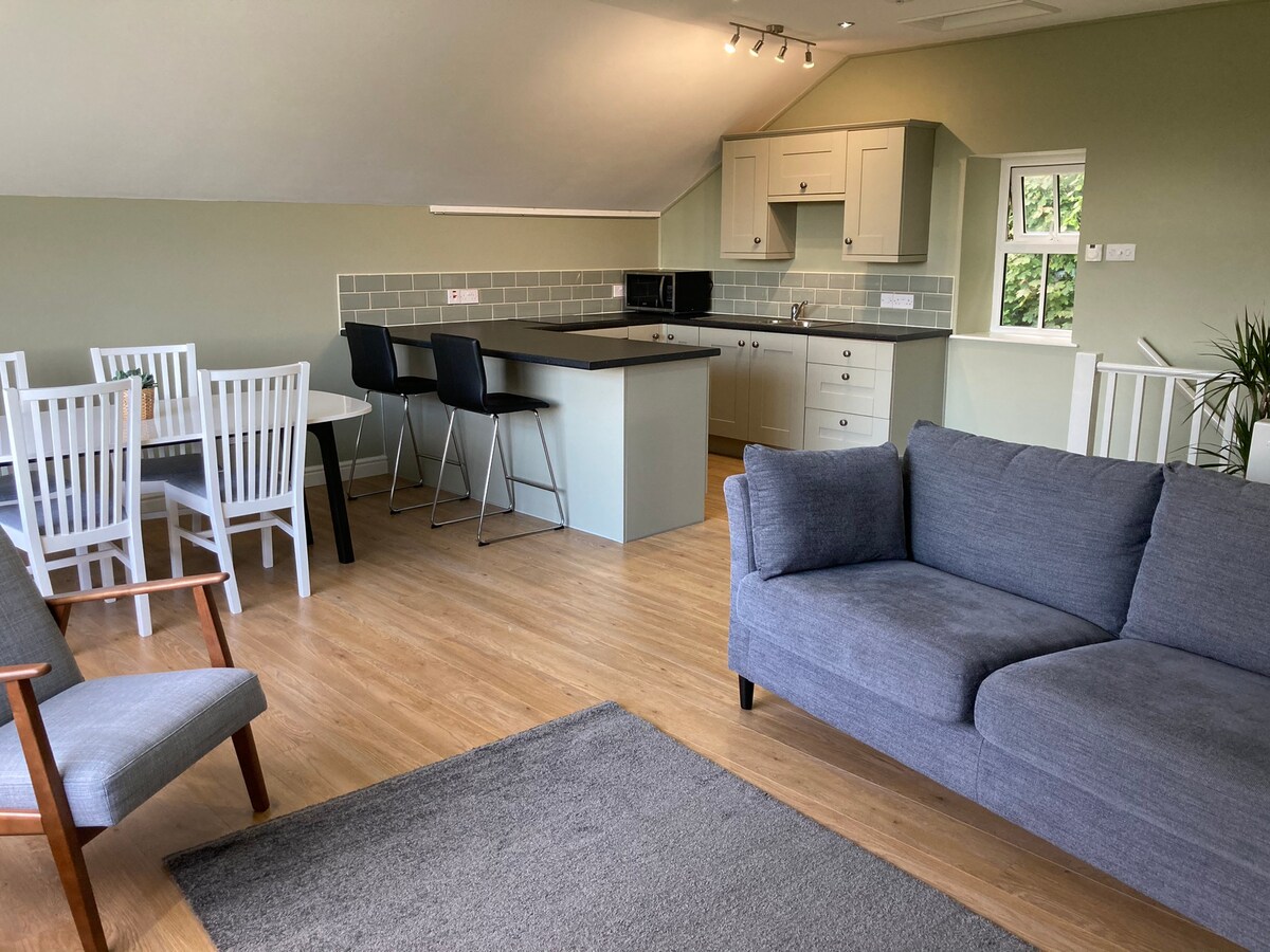 Nueva conversión de granero. He intentado mantener el carácter. La decoración es agrícola/industrial, reutilizando la mayor cantidad posible de materias primas de la granja. Cuenta con tres camas tamaño king, todas en suite. 1 dormitorio muy grande arriba con sofá y balcón y 2 dormitorios más pequeños en la planta baja. Cada habitación cuenta con TV y wifi. La sala de estar principal incluye una cocina, una mesa, un gran sofá en forma de L y una mesa de café: una mesa y sillas al aire libre, barbacoa y un área cubierta para guardar bicicletas y un cargador de vehículos eléctricos (50p/kw), etc.