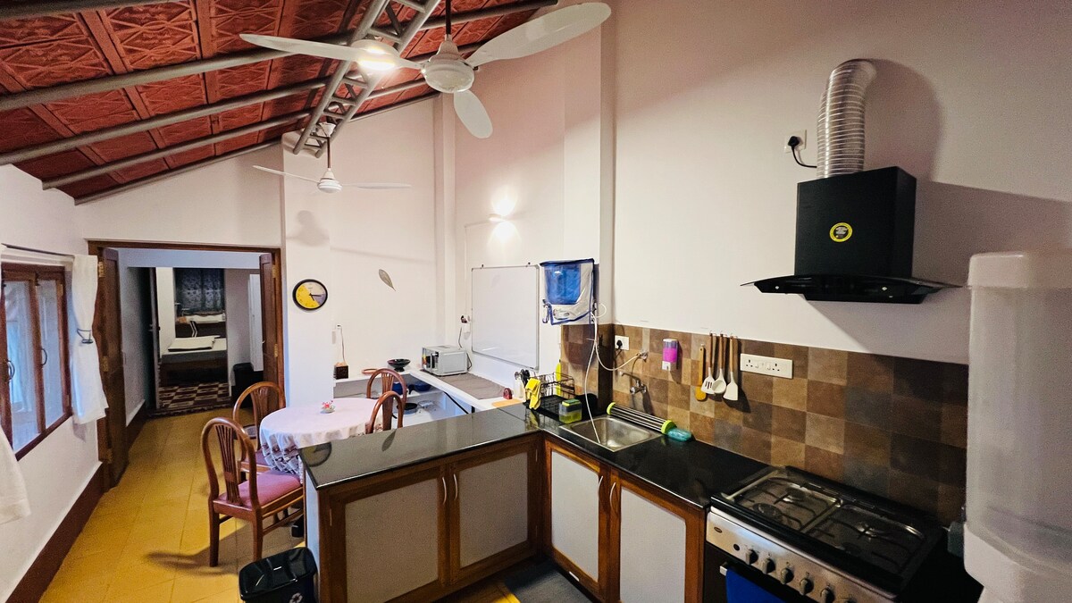 Tu hogar lejos de casa en Auroville ha sido decorado con buen gusto con un tema de Chettinad. Cada rincón de nuestra casa es instagrameable con interiores coloridos, arte kolam, decoración antigua y mucho más. El 1BHK puede alojar cómodamente hasta 4 personas con una cama columpio y un sofá cama en la sala de estar. Hay muchos restaurantes cerca, nuestra cocina ha sido cuidadosamente equipada para todas tus necesidades, ya sea para hacer una tortilla rápida o una comida india completa. Así que siéntate, relájate y bebe tu café.