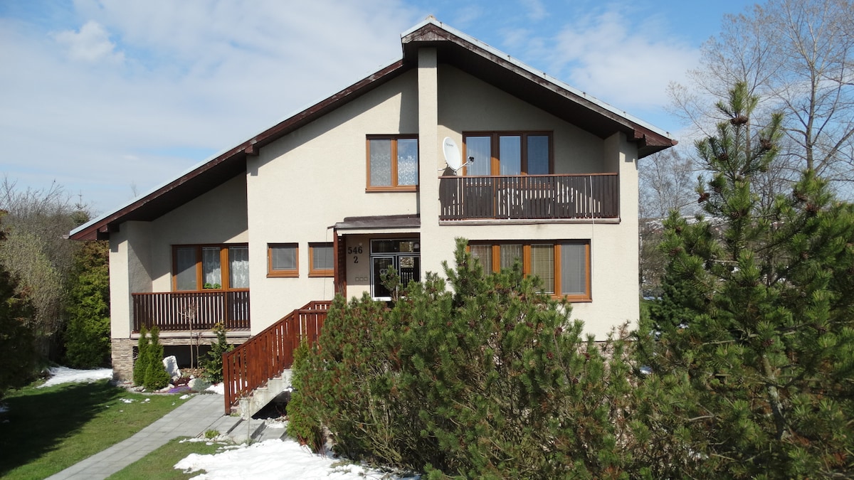 Apartamento de 2 habitaciones amueblado con buen gusto y de alta calidad con balcón en un pintoresco pueblo justo debajo de los Altos Tatras, cerca de Poprad y Starý Smokovec, con vistas a los Tatras, aparcamiento gratuito en el patio, privacidad y equipamiento completo. Adecuado para 1-6 personas. La cama doble plegable tiene colchones dormeo de calidad. Por favor, respete que también tengo cosas personales en él. La entrada/salida de la autopista D1 está a unos 5 minutos en coche. Las instalaciones se desinfectan a fondo después de cada salida de los huéspedes.