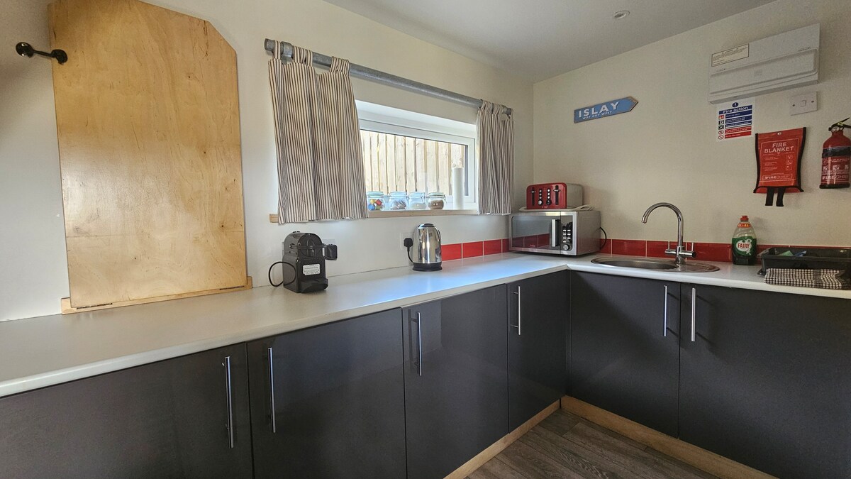 Situado a unos 4 kilómetros del pueblo de Port Ellen, el POD ofrece paz, tranquilidad y relajación después de explorar las destilerías y las alegrías de la isla. Port Ellen y Laphroaig se pueden ver desde el POD, que tiene vistas a la bahía de Kilnaughton. El camino a las tres destilerías de este lado de la isla comienza en el pueblo, llevándote primero a Laphroaig y luego a Lagavulin, terminando en Ardbeg, donde hay comida deliciosa disponible. Ven, descúbrelo por ti mismo, te espera una cálida bienvenida.