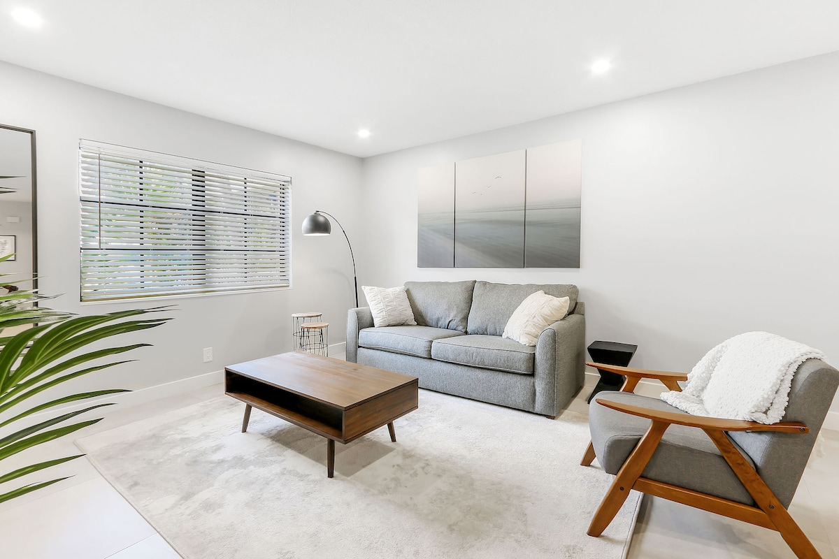 Welcome to Villa Blanca, a bright and airy studio offering plush furniture and high-quality amenities. Meticulously designed with wood floors, stylish finishes, and pops of color, this hidden gem could be yours. Top 5% home. ♥ Washer & Dryer ♥ 15 mins to FLL airport, Port Everglades, Hard Rock Casino and Chase Stadium ♥ 10 mins to downtown/restaurants/beach ♥ Private entrance & self check-in ♥ Free off-street parking ♥ WFH ready ♥ Beach chairs & towels