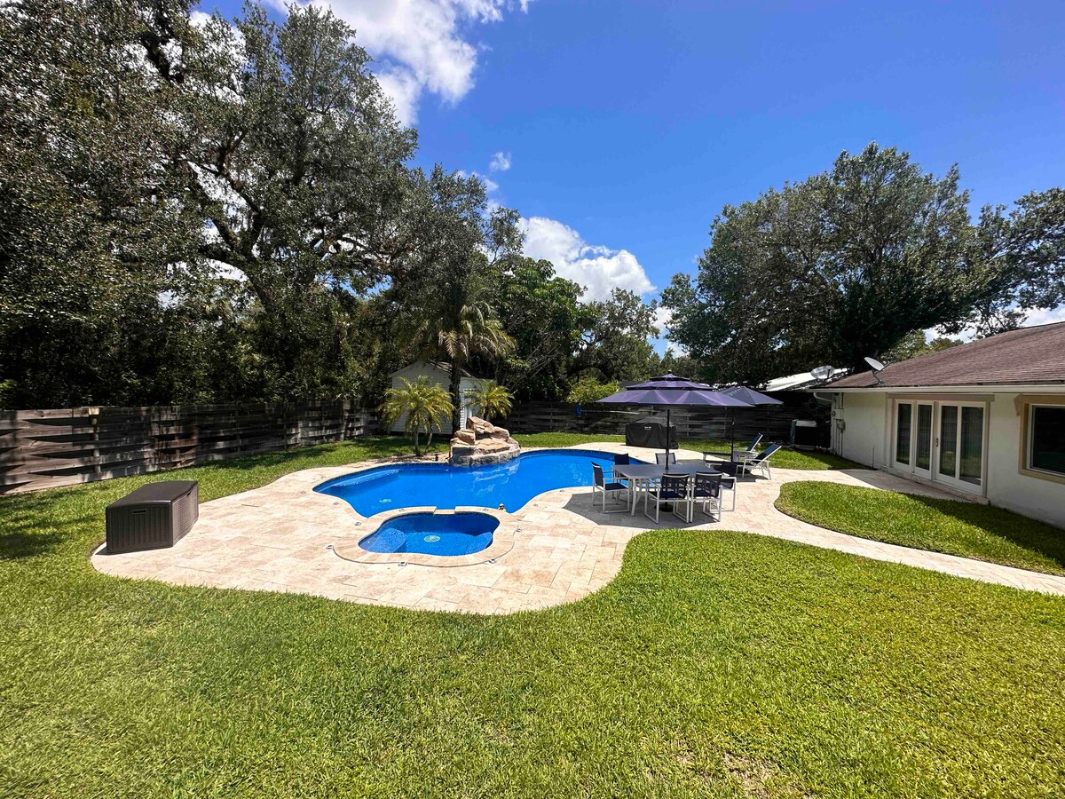 Esta es una hermosa casa de vacaciones recién reformada para toda la familia o para ti y tus amigos. Es un 2/2 con capacidad para 6 personas cómodamente. La pieza central es una habitación de tres estaciones que se abre por todos los lados, lo que añade una sensación de amplitud adicional a todo el lugar. ¡También se incluye una piscina de última generación recién instalada que es perfecta para una escapada en el clima de Florida! (***Calentador de piscina disponible de noviembre a marzo bajo petición con cargo eléctrico adicional***)