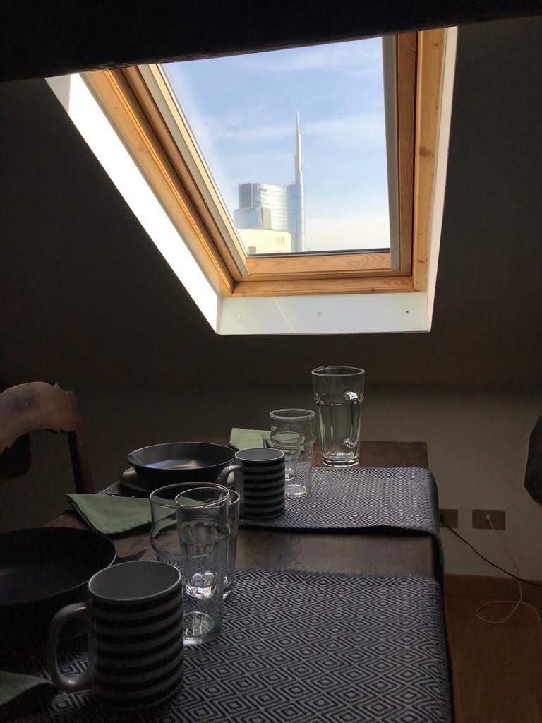 Ático rodeado de vegetación con vistas a Milán. El apartamento está situado en el octavo y último piso y consta de un espacio abierto con cocina y sofá cama doble (con dos toppers para garantizar el mejor descanso posible), dormitorio con cama doble y sillón cama y un baño. El apartamento goza de una espectacular vista panorámica del Duomo y del centro de la ciudad, que se puede apreciar desde el ventanal practicable mientras se toma una copa de vino.