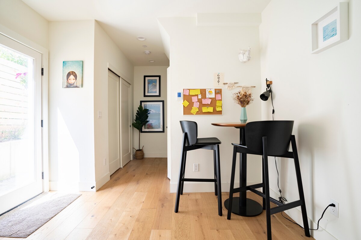 ¡Te damos la bienvenida a tu nueva base en Seattle! Nuestra espaciosa suite de invitados moderna de mediados de siglo de 750 pies cuadrados se encuentra en la planta baja de nuestra hermosa casa de Wallingford y fue completamente renovada en agosto de 2017 pensando en la comodidad. Desde aire acondicionado y aparcamiento fuera de la calle (¡ambos difíciles de encontrar en Seattle!) hasta ventanas insonorizadas y de doble cristal, entrada privada con teclado y un diseño adaptado específicamente para los huéspedes de Airbnb. Estarás a minutos de todo: ¡a 3,5 millas del centro de la ciudad y a 1,2 millas de la UW!