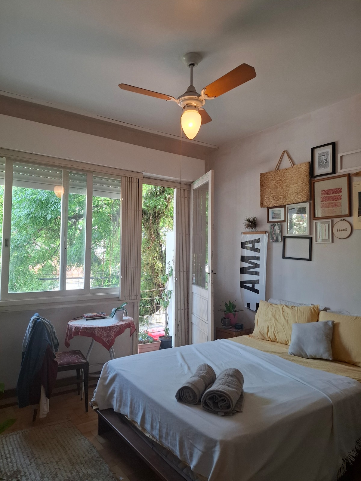 Hermoso jardín de alta gama en una ubicación privilegiada en el punto más alto de Porto Alegre. Tiene capacidad para 4 personas. Aceptamos mascotas pequeñas/medianas. Tiene una cocina completa, una cama doble con colchón con la parte superior acolchada, 2 colchones individuales y un baño muy bien iluminado con una excelente ducha. En el balcón hay una mesa, 2 sillas, 1 tumbona y una sombrilla. Plaza de aparcamiento incluida en el precio, con posibilidad de una segunda plaza de aparcamiento (ver tarifa).
