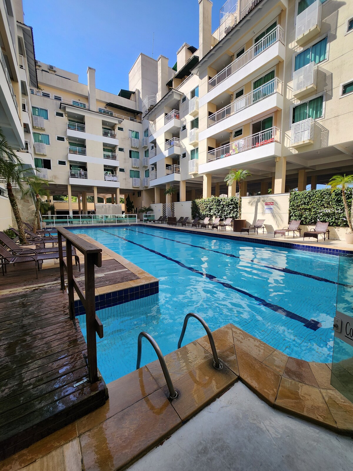 Apartamento así como,aire acondicionado en el dormitorio y sala ,TV en los dormitorios y sala, cocina completa · Piscina al aire libre con carril olímpico; · Piscina climatizada y bañera de hidromasaje. · Piscina para niños; · Plataforma húmeda; · Sauna Seca; · Brinquedoteca; · Sala de fitness; · Arcade Room; · Sesión de cine con palomitas de maíz; · Servicio de internet wifi. Cable .TV; · Estacionamiento; · Puerta de entrada 24 horas; ·