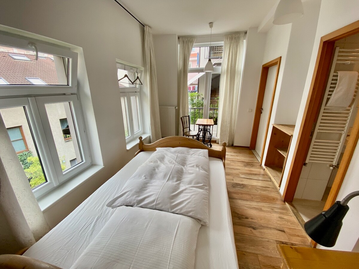 ¡Amplio apartamento con baño privado, perfecto para 4 personas! Disfruta de la comodidad de un apartamento más grande con un baño moderno, una mesa acogedora y sillas para cenar juntos. Hay una cafetera de cápsulas, hervidor de agua y sábanas de satén acogedoras para relajarte al máximo. Nuestros apartamentos son la opción perfecta para aquellos que buscan comodidad y privacidad durante su estancia.