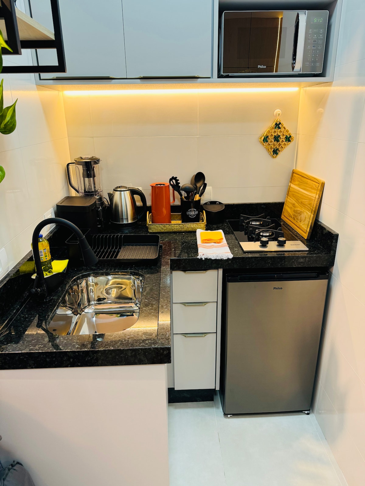 kitnet recién reformada, suelo de la cocina y baño en porcelanato, y el suelo del dormitorio en madera original restaurada. Edificio con conserjería las 24 horas, frente al mar de la playa Brava y a 3 cuadras de la playa Mansa, en lo mejor de Caiobá. Vista lateral al mar y montaña. Piso 12. El apartamento cuenta con utensilios básicos de cocina. El huésped debe traer ropa de cama y toallas. No dispone de plaza de aparcamiento. Hay estacionamiento privado cerca.