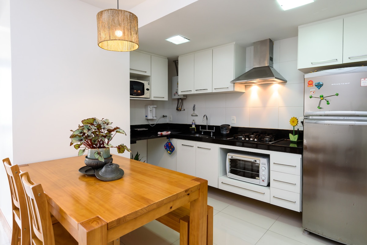 A una cuadra de la playa. El anfitrión habla alemán, inglés y español. Lugar tranquilo, mucha vegetación, balcón con vistas, hamaca y sol por la mañana. Sala de estar integrada con sofá cama, TV y split. Dormitorio con cama tamaño queen, armario y caja fuerte. Apartamento con piscina climatizada, sauna, restaurante, tienda de comestibles y aparcamiento. 📍 Bien situado: cerca de mercados, centros comerciales y playa, con acceso en coche, metro, BRT, Uber y taxi acuático. ⭐ IDEAL PARA: • Parejas • Familias pequeñas • Ejecutivos • Trabajo a distancia + ocio