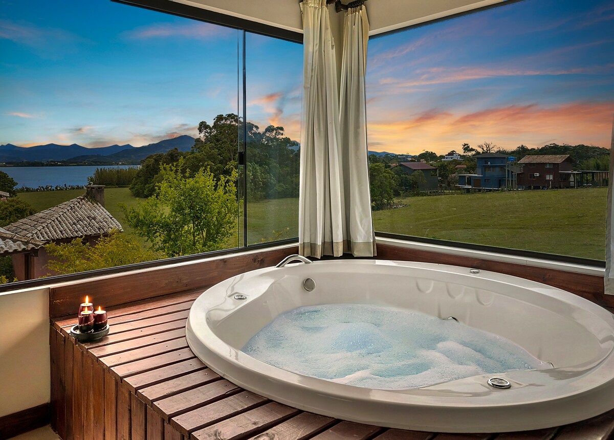 Disfrute del refugio EXCLUSIVO Y PRIVADO con jacuzzi caliente, en medio de un bosque con espectaculares VISTAS del atardecer en Lagoa Encantada. Las suites cuentan con aire acondicionado, TV y Wi-Fi de 600 MB Ofuro caliente y con hidromasaje. Quiosco Espacio Gourmet completo. Hay dos suites, una con una cama doble y la otra con dos camas dobles, no se alquilan por separado. Cerca de la playa y del centro. Acceso a la playa por sendero o escalera exclusiva, un hermoso ejercicio para el cuerpo y el alma.