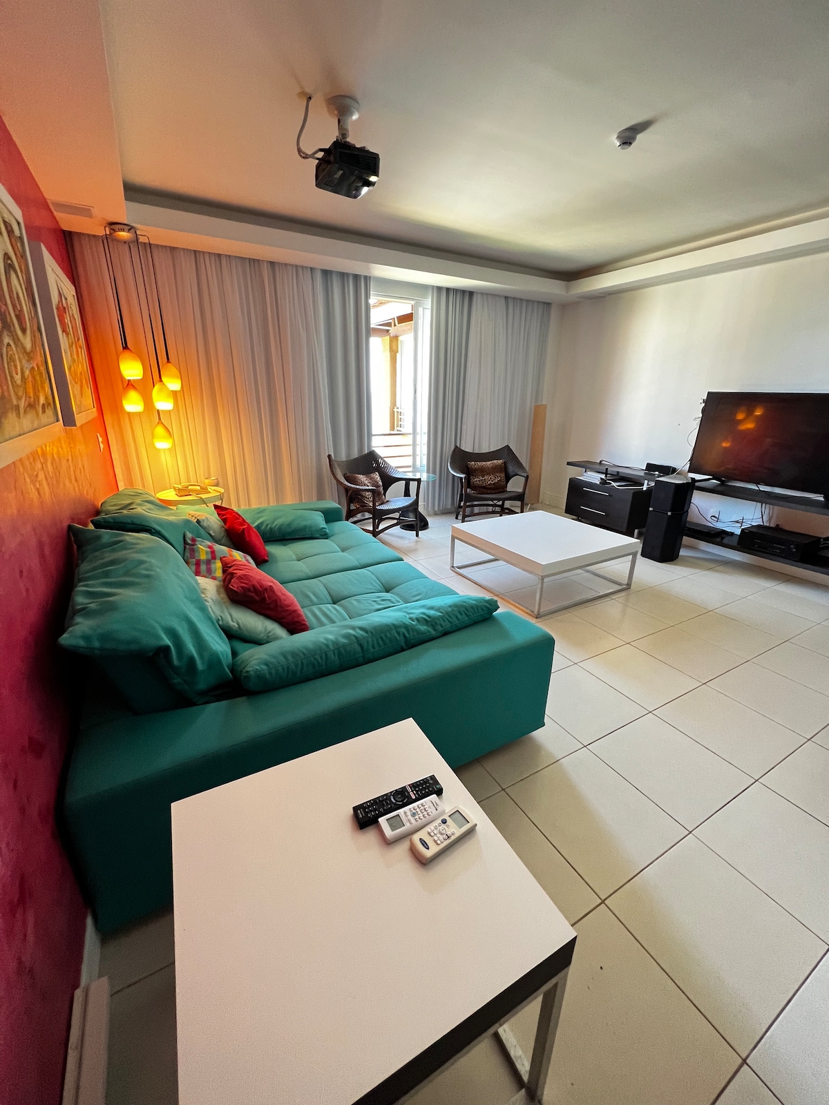 Relájate con toda la familia en este alojamiento tranquilo. Apartamento ¼ con vistas al mar en Amaralina Habitación para 4 personas Perfecto para estancias largas o cortas. Habitación: cama matrimonial, aire acondicionado, armario, TV inteligente Habitación integrada al balcón con sofá cama doble, aire acondicionado, vistas al mar, mesa, sillas, cortinas Cocina completa de estilo americano Ropa de cama, Wi-Fi, garaje y conserje las 24 horas.