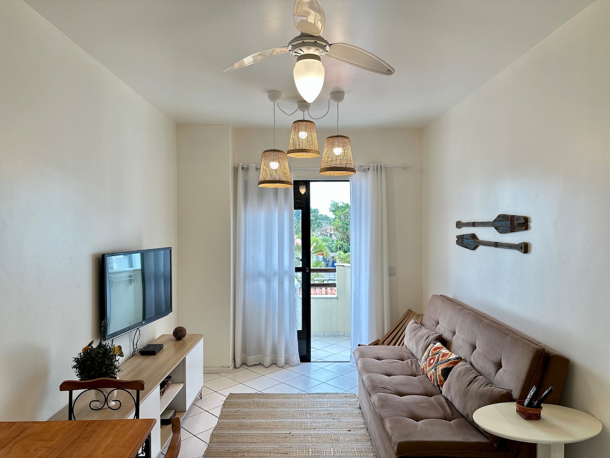 A solo unos pasos de la Playa de Canasvieiras, este apartamento en Florianópolis es la elección ideal para quienes buscan una experiencia frente al mar. Disfrute de un espacio con aire acondicionado en la sala y en las tres suites, una cocina completa y, lo más destacado, un balcón con parrilla y una deslumbrante vista al mar. Sienta la brisa y el sonido de las olas en todo momento. ¡Reserve ya su estadía y viva días inolvidables!