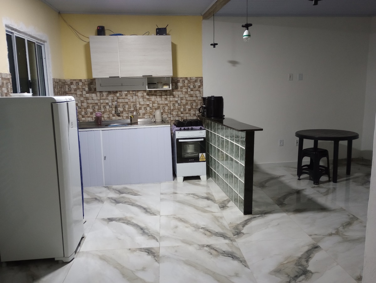 A casa possui 50m² de deck externo e 50m² de área construída. Está a 200 metros da praia. Projetada especificamente para duas pessoas maiores de idade, . A casa possui sala/quarto, cozinha (estilo loft) e banheiro (CHUVEIRO SEM AQUECIMENTO), toda energia elétrica é solar e permite luz em todos os cômodos, carregar celulares, câmeras e pequenos eletrônicos