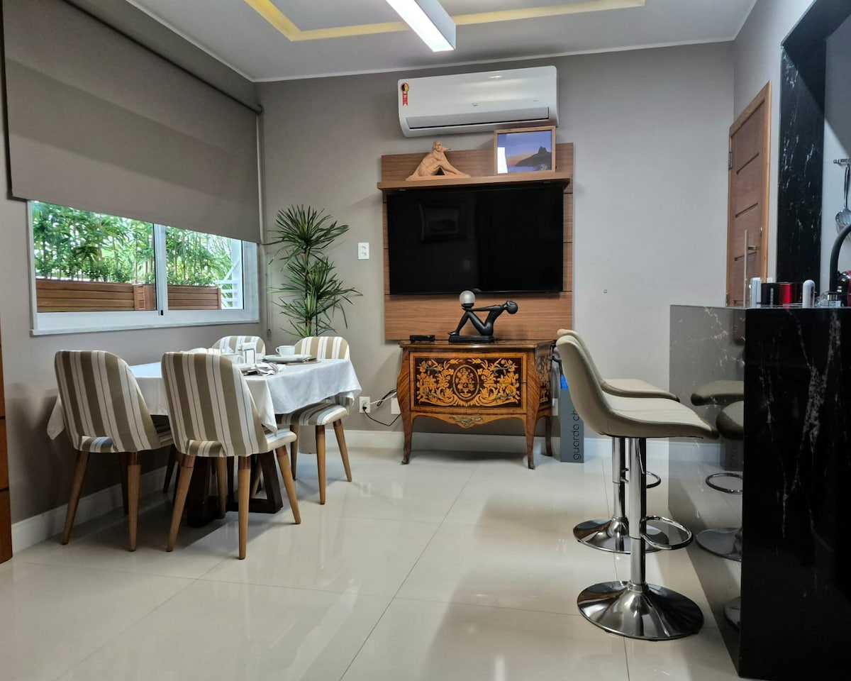 Lee las 4 reglas de la casa en la sección "Lo que debes saber" y "Mostrar más". Características: - Limpieza diaria del apartamento incluida - Apartamento recién reformado, con muebles nuevos - Infraestructura del edificio con piscina, sauna, restaurante y gimnasio - Conserjería 24h/7d - Cerradura con contraseña - Smartv de última generación en la sala - Wifi de alta velocidad - Capacidad para 3 personas, 1 en el sofá (recomendado para niños) - Cocina completa - Junto a los centros comerciales Leblon y Rio Design - 5m a pie playa
