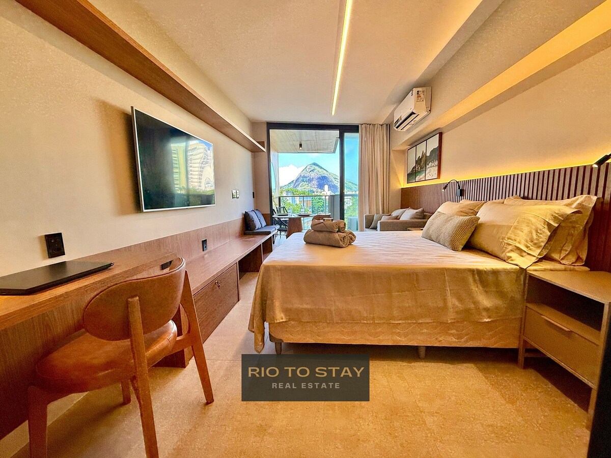 Do you want to wake up with one of the best possible views in Rio? Be a 3min walking distance from the beach ? Enjoy the services of a hotel (check-in, daily cleaning, check-out) and the privacy and confort of an apartment? This is your best option to stay in Rio!! This 1BR apartment located on the 26th floor of the building offers a stunning view of the Lagoa and Corcovado Christ. Located in the heart of Leblon, 2 blocks from the beach, lots of stores and restaurants at walking distance.