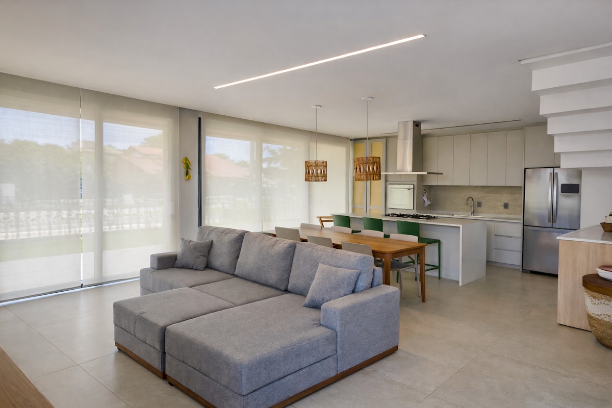 Disfrute del lujo y la comodidad en Casa Mar Grosso, ubicada a 100 metros de la impresionante playa de Campeche. Con un diseño moderno y una infraestructura pensada para tus vacaciones de ensueño, esta residencia es una invitación a la relajación y la diversión. Espacio: Disfrute de una estancia como nueva en 3 sofisticadas habitaciones, incluyendo una suite con cama queen, espacio de oficina y aire acondicionado. La sala de estar y la cocina integradas ofrecen una experiencia de convivencia única, complementada por duchas de gas de alta presión