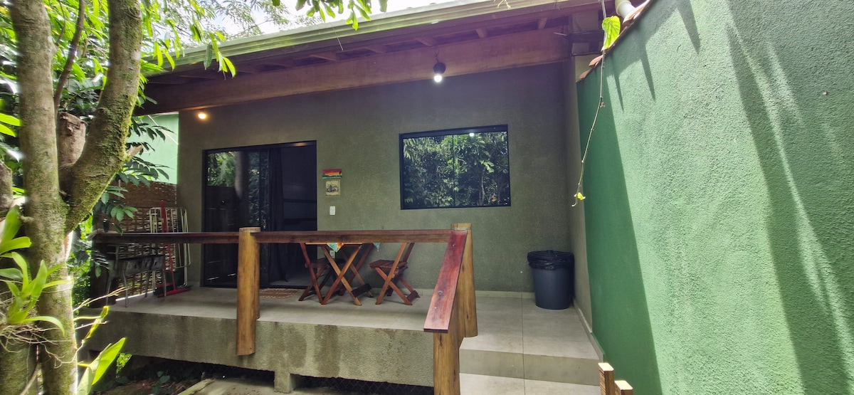 Relájese en este espacio tranquilo y elegante. Situado en la hermosa playa de Prumirim. Casa tipo loft con balcón en medio del bosque atlántico a unos 800 metros de la playa. 30 M2 de puro encanto con una cascada que pasa por la parte posterior de la propiedad. Dormitorio con cama box doble. Sala de estar con sofá y mesa de centro, bistró, cocina completa. Cocina, horno eléctrico y nevera dúplex. Smart TV/ Wi-Fi. Hermoso jardín. Barbacoa y estacionamiento.