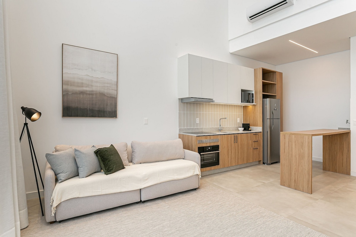 ¿Buscas un punto de control acogedor en el corazón de la ciudad? Te sentirás como en casa en este loft bien planificado. Ubicado en el centro de Florianópolis, es perfecto para alguien que busca explorar la isla o asistir a un evento cercano. Incluye: - Cama tamaño queen. - Cocina gourmet completa. - Lavadora y secadora. - Mesa grande para comidas y oficina en casa. - TV giratoria 360 para que puedas verla desde cualquier lugar del loft. - Baño limpio y moderno. - Wifi. - Aire acondicionado completo.