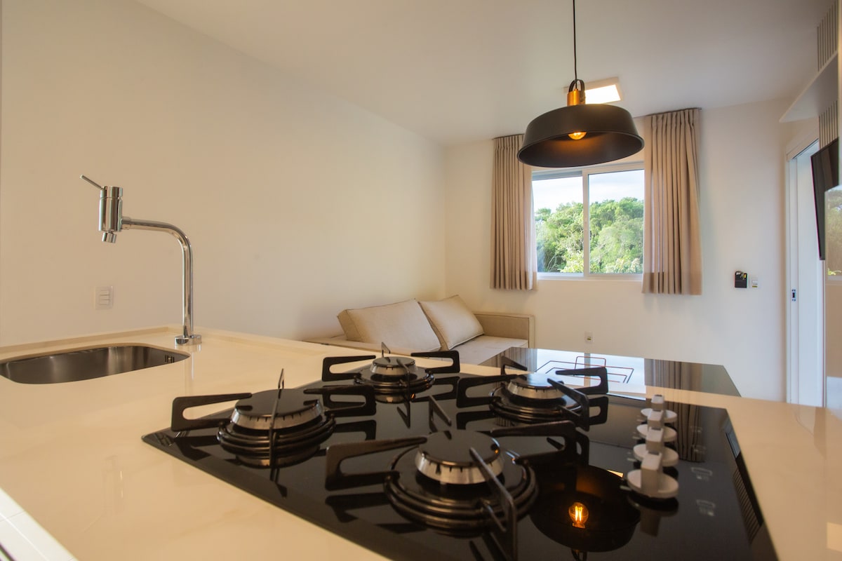 Relájese en este espacio tranquilo y elegante. Icon Home Design, edificio completo (piscina en la azotea) en la zona con más encanto de Jurerê Internacional-Amoreville. Basta con bajar del edificio directamente al bosque Amoreville con sus lagos y carriles bici. La propiedad está a pocos pasos del Open shopping y sus instalaciones, cerca de restaurantes, cafeterías y pizzerías.