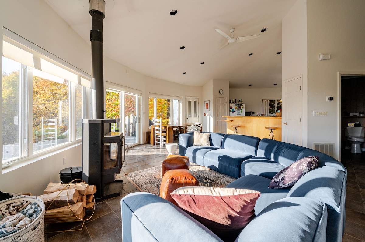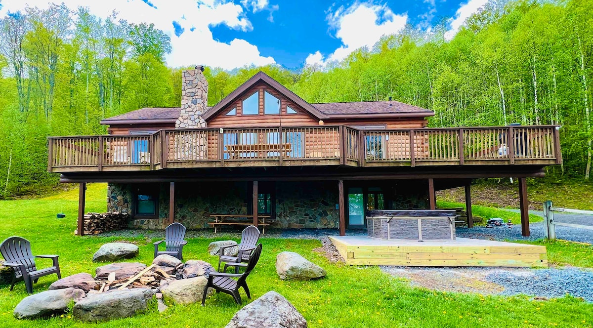 Te espera una gran escapada en 12 acres de terreno privado. Si prefieres unas vacaciones relajantes o si quieres participar en actividades locales (senderismo, ciclismo, natación, esquí, raquetas de nieve, trineo), este es tu lugar. Disfruta de vistas de 360 grados de las montañas Catskill desde casi cualquier lugar de la propiedad. Disfruta de tu café de la mañana mientras contemplas el amanecer en la gran terraza. Juega en el gran patio privado. Las noches despejadas son las mejores para ver el atardecer, un pozo de fuego y contemplar las estrellas.